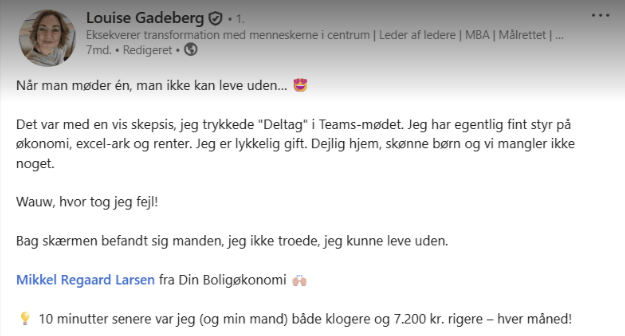 De har bare valgt at stille sig på kundens side for at oversætte banksprog til noget brugbart for at skabe tryghed, bedre vilkår for dig - og bevares, kæmpestore besparelser, der skaber jubelscener, som den Louise beskrev efter sin oplevelse med dem - se nederst i mailen.